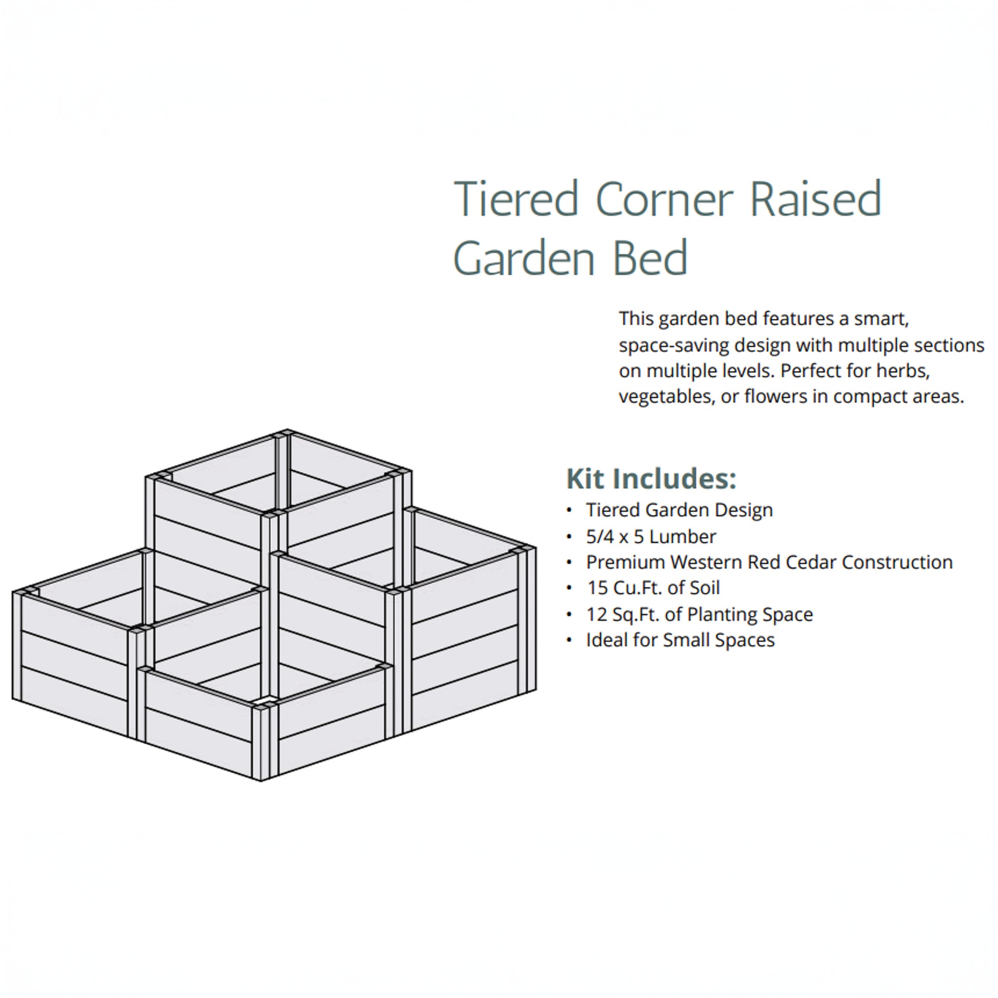 The Tiered Corner Cedar Garden Bed Corner 3.5' × 4' ships in 1 box.