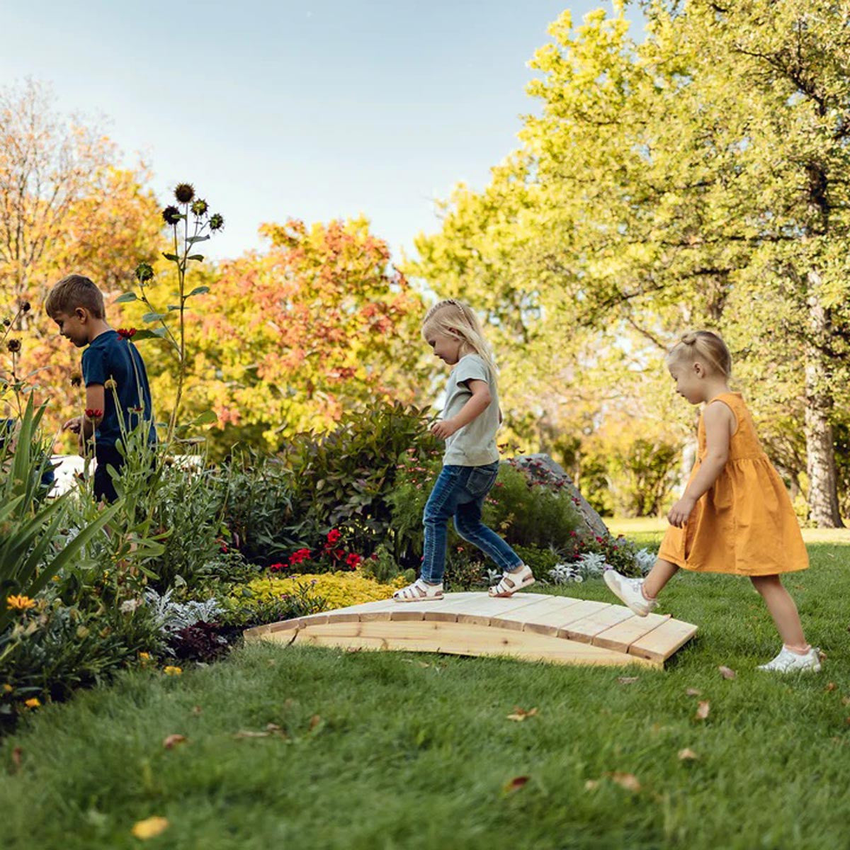 Bring a touch of serenity and rustic character to your landscape. The gentle arch and warm cedar tones make this bridge an inviting accent — perfect as a simple crossing or as a decorative focal point for a pond, rock garden, or landscaped path. Its compact size keeps it well-suited for smaller spaces, yet it is sturdy enough to support real foot traffic.