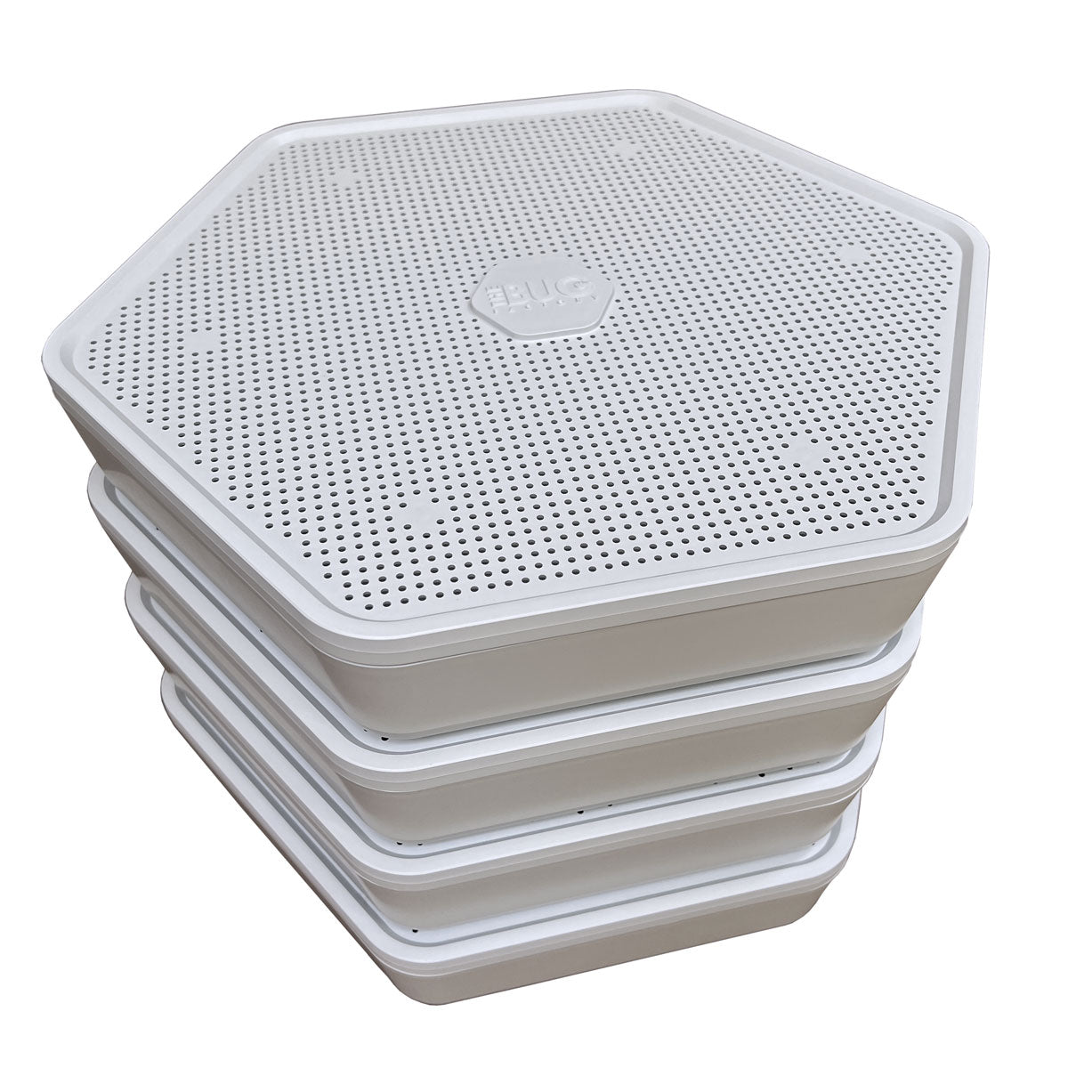 The escape-proof habitat is designed to produce 150g - 300g of mealworms per tray. It's a great system to recycle your fruit and vegetable waste while turning low cost waste feed (wheat bran, oatmeal) into high-quality pet feed. The perforated lids keep colonies well oxygenated while simplifying harvesting of frass (castings, exoskeltons) through sifting. Adult beetles are cloistered in the blue breeding tray, keeping the distinct lifecycles separated for superior performance.