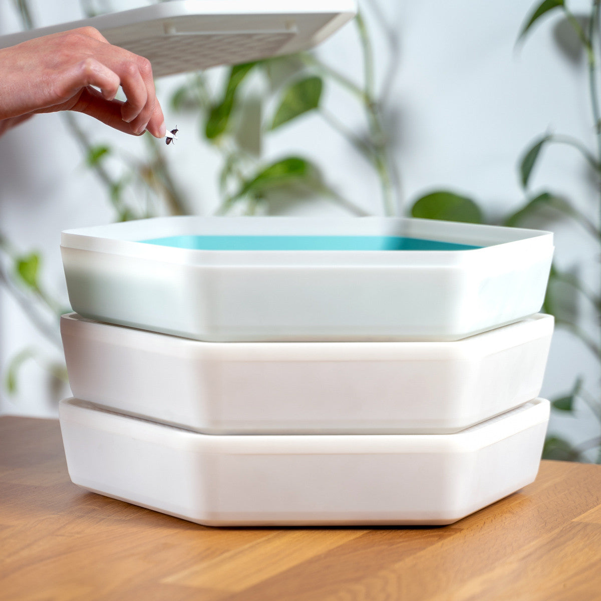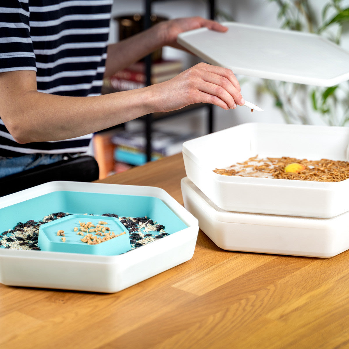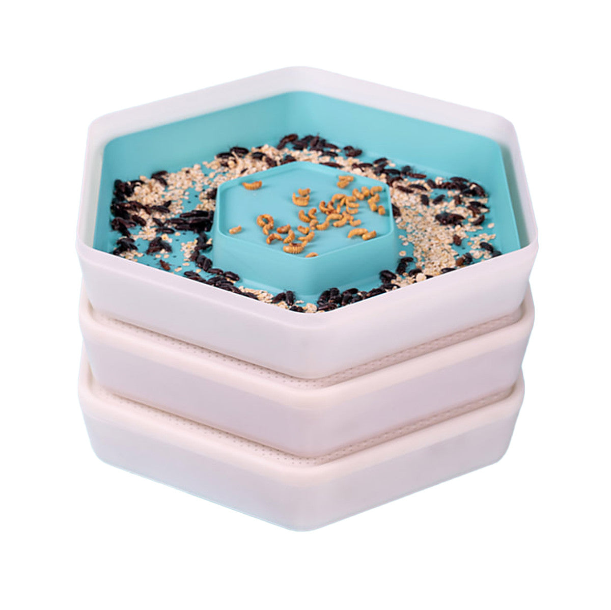 The pod system is a unique tiered design that creates the ideal ecosystem for a continual supply of live mealworms while making the maintenance incredibly easy.