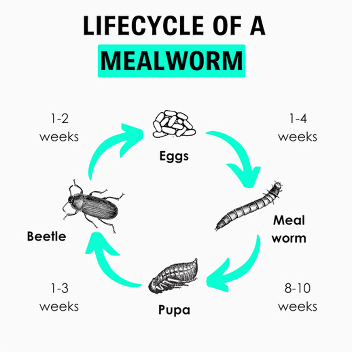 - Low maintenance care, mealworms can survive several weeks without new food