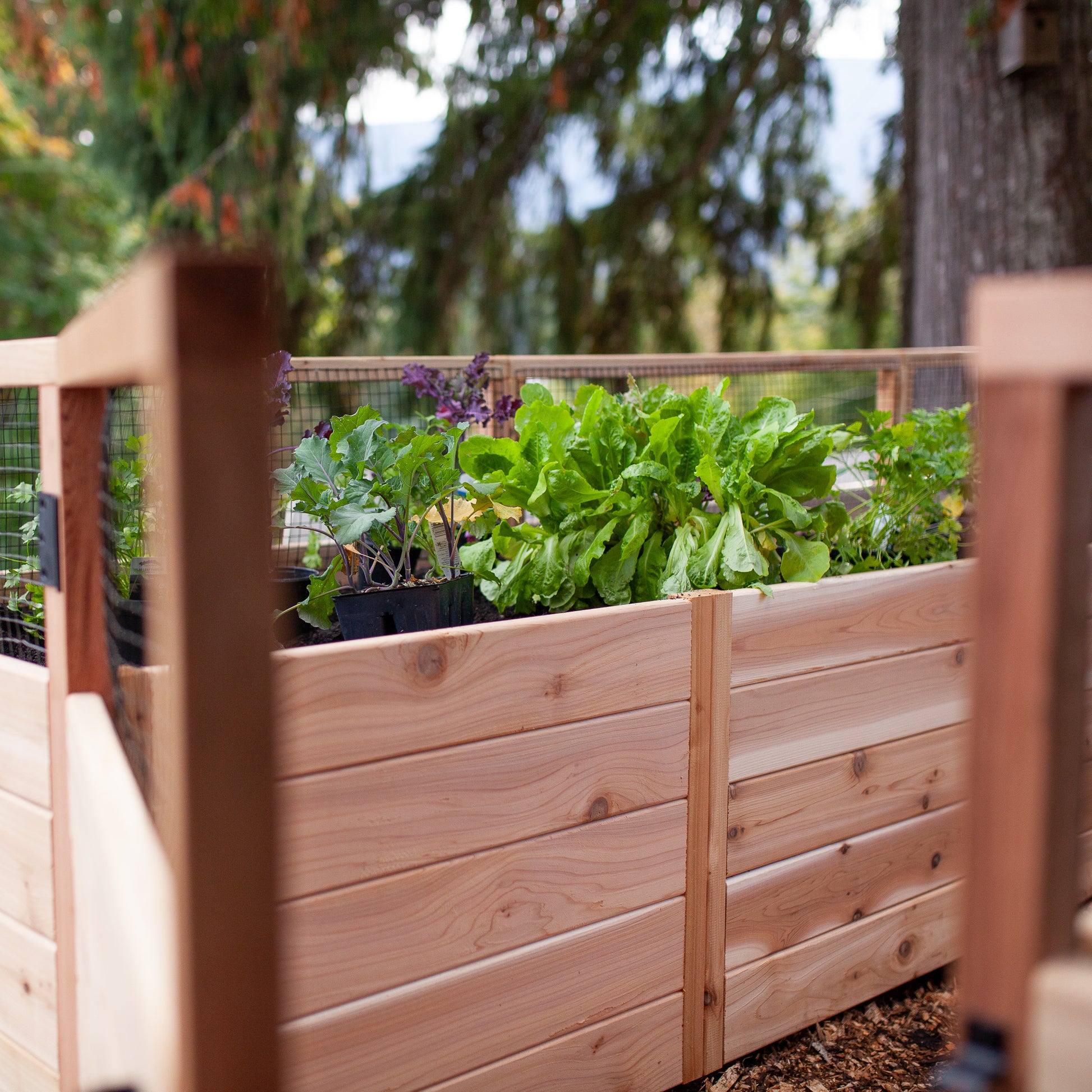 All of our fencing sections are backed with 3/4" wire mesh. When the fencing is delivered, the mesh is already affixed. So, it takes only minutes to attach the fencing sections to the garden beds. Up close, it looks attractive, but from a distance you can't even see it.