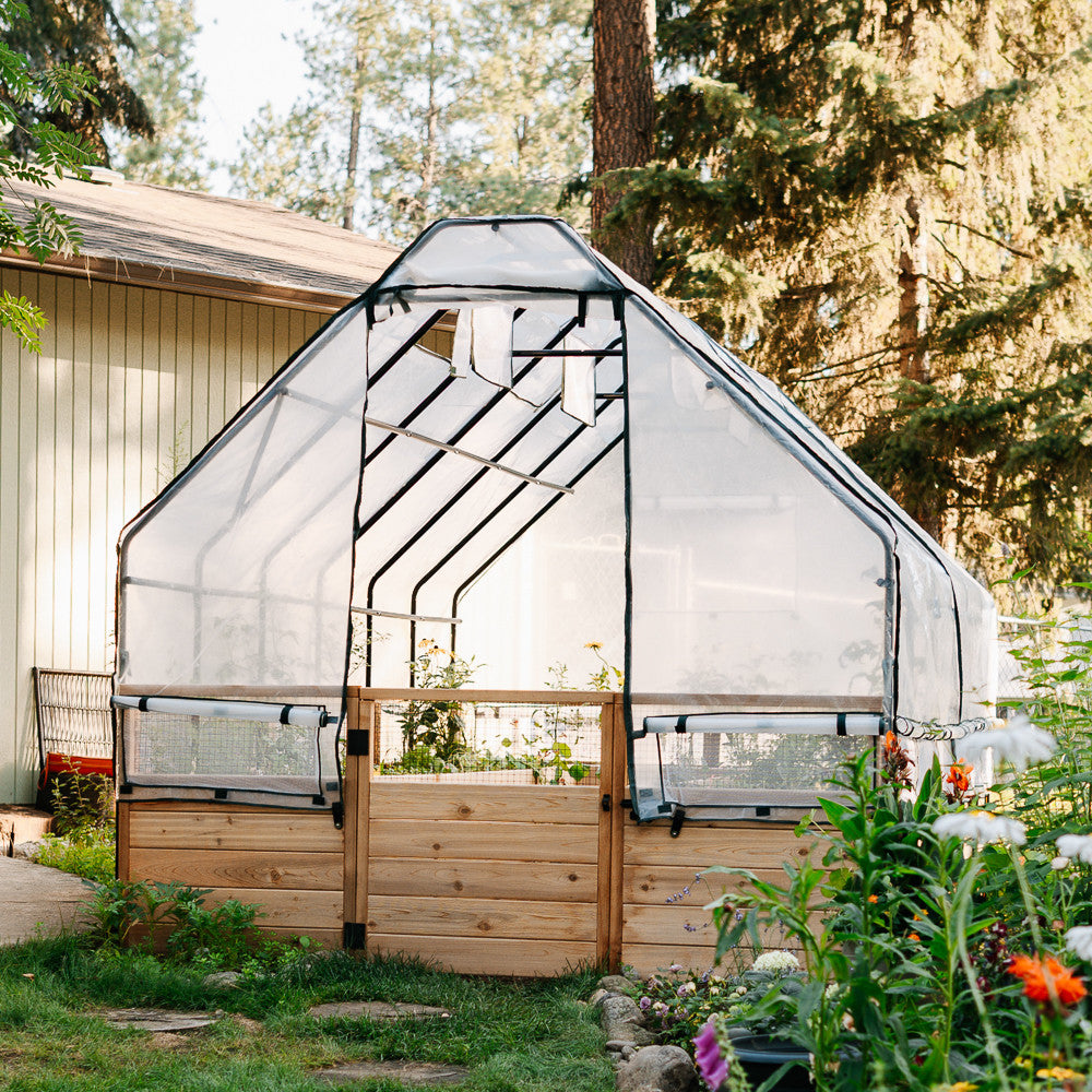 Cedar Complete Raised Garden Bed Kit with Greenhouse Cover 8' x 12'