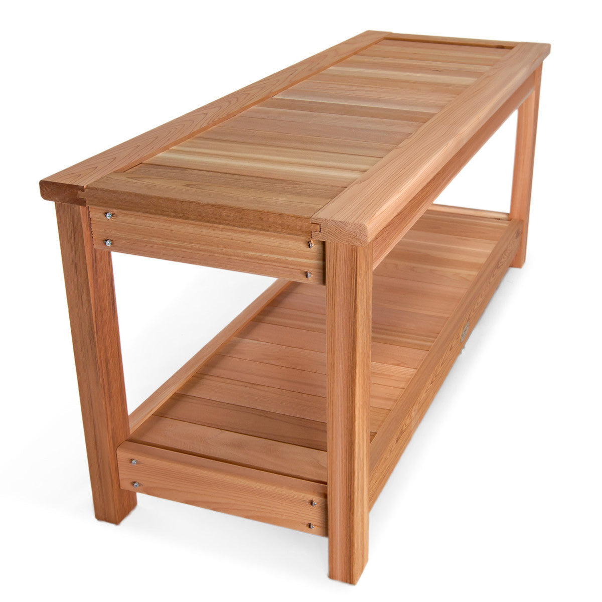 Made from durable, rot-resistant Western Red Cedar, the Deluxe Sauna Bench offers ample sitting space and a lower storage shelf, making it an ideal addition to entryways, shower rooms, saunas, or poolside areas.
