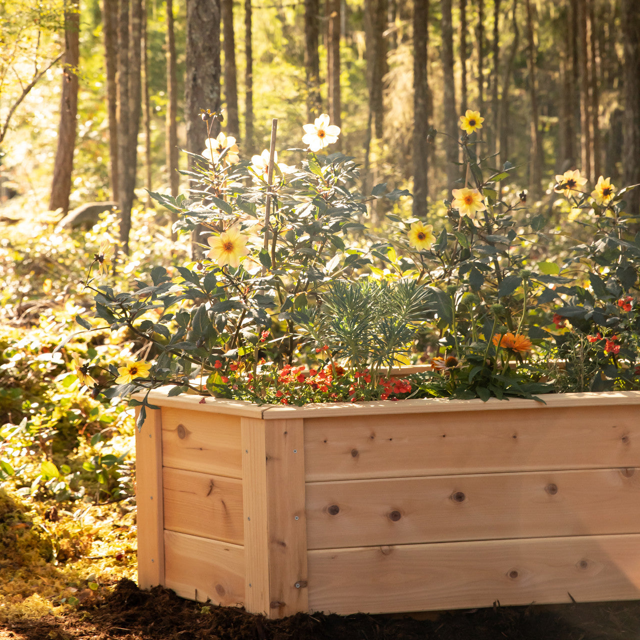 These raised beds are made from kiln-dried Oregon grown cedar. It is a fragrant, light-colored wood with even texture and strong natural oils to protect against moisture and fungal decay.