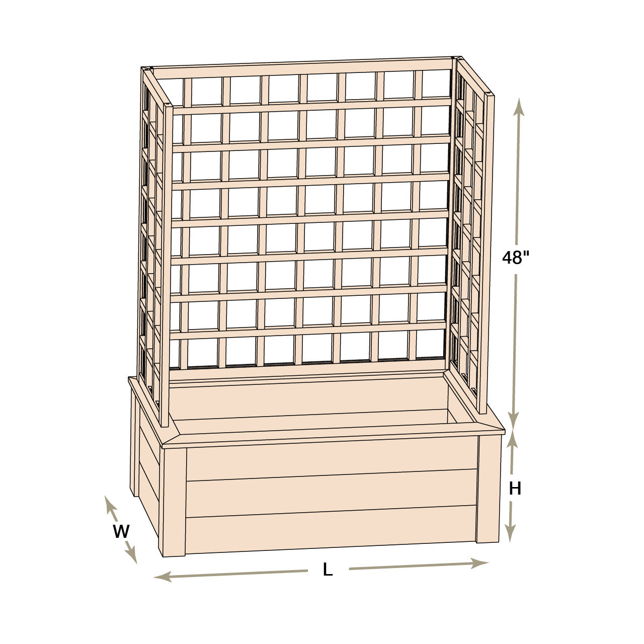 Choose your raised bed width and length to create either square or rectangle shapes to suit your space and needs. Raised beds come with a standard 48" tall trellis.