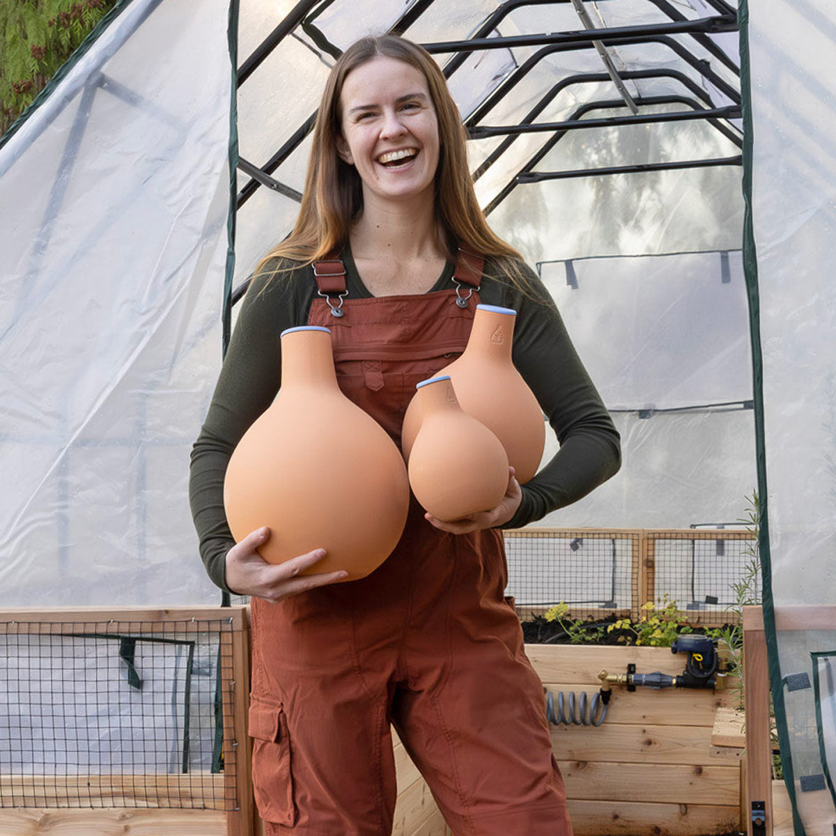 The Oya is a porous clay vessel that is planted in the ground to naturally water your garden - reducing water waste and watering time.