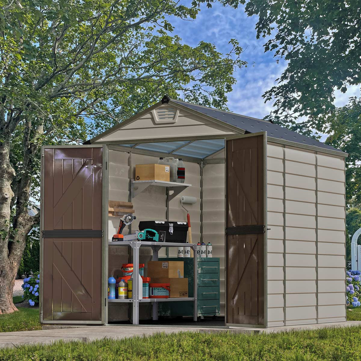 The SkyLight Shed is perfect for organizing and protecting tools and equipment. It's even large enough to turn into a work station while still having room to store supplies or outdoor furniture. Made with virtually unbreakable polycarbonate panels and a reinforced aluminum frame, this shed can be used for years, maintenance-free.