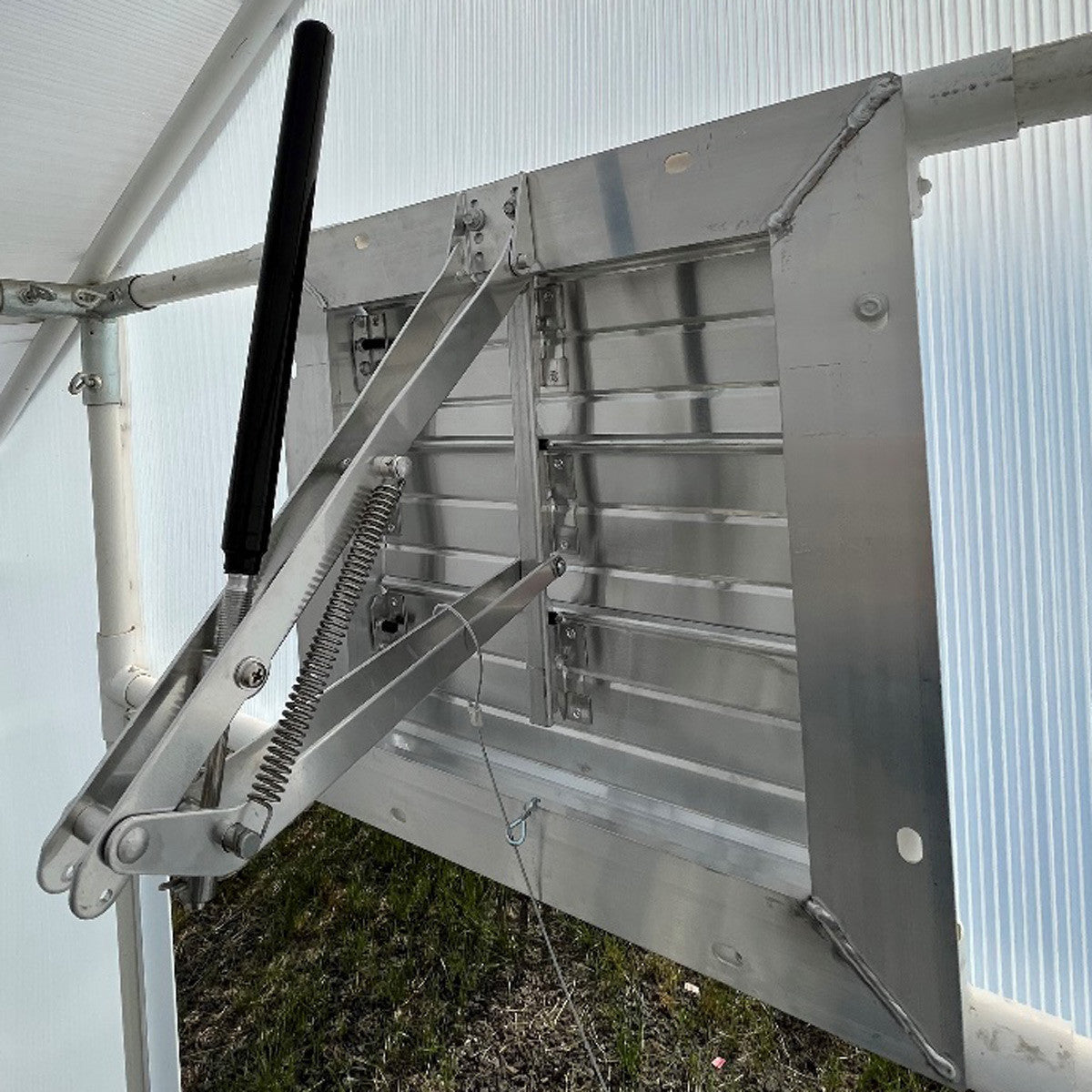Your Solexx greenhouse includes a 12”x12” aluminum louvered vent and a heat-activated opener! This new addition replaces the previous 24” x 12” Solexx Manual Louver. Despite its smaller size, the new louver opens at a 90-degree angle, allowing even more airflow within the greenhouse. Each kit also includes a tie down kit, and shelves.