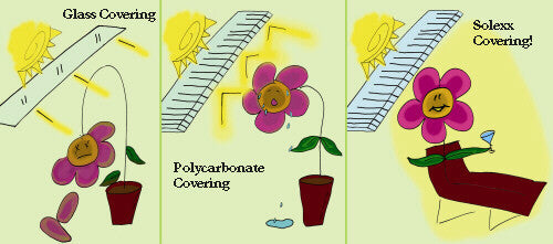 Strong and shatter-proof, double-walled Solexx panels will protect your seedlings and plants from strong winds, hail, driving rain, snow, and frost. With these insulated Solexx panels, you will keep heating costs low, and you can extend your growing season from early spring to late fall. Unlike other greenhouse coverings, Solexx adds more than double the UV inhibitors, and it is added as the plastic is processed, so it is not just a coating. Solexx panels create an evenly diffused light, so all plants benefit from optimal growing conditions. Prevents your plants from ‘burning’ in the direct sun.