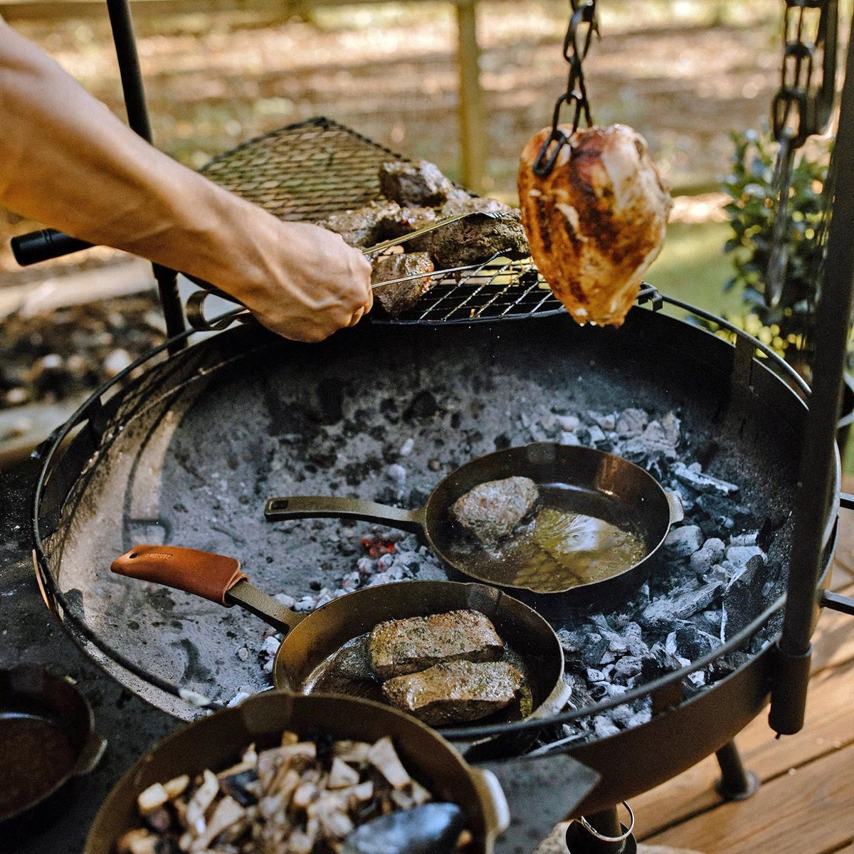 Inspired by the open fire cooking of the American West, this backyard must-have can be a simple fire pit or an outdoor cooking game changer.