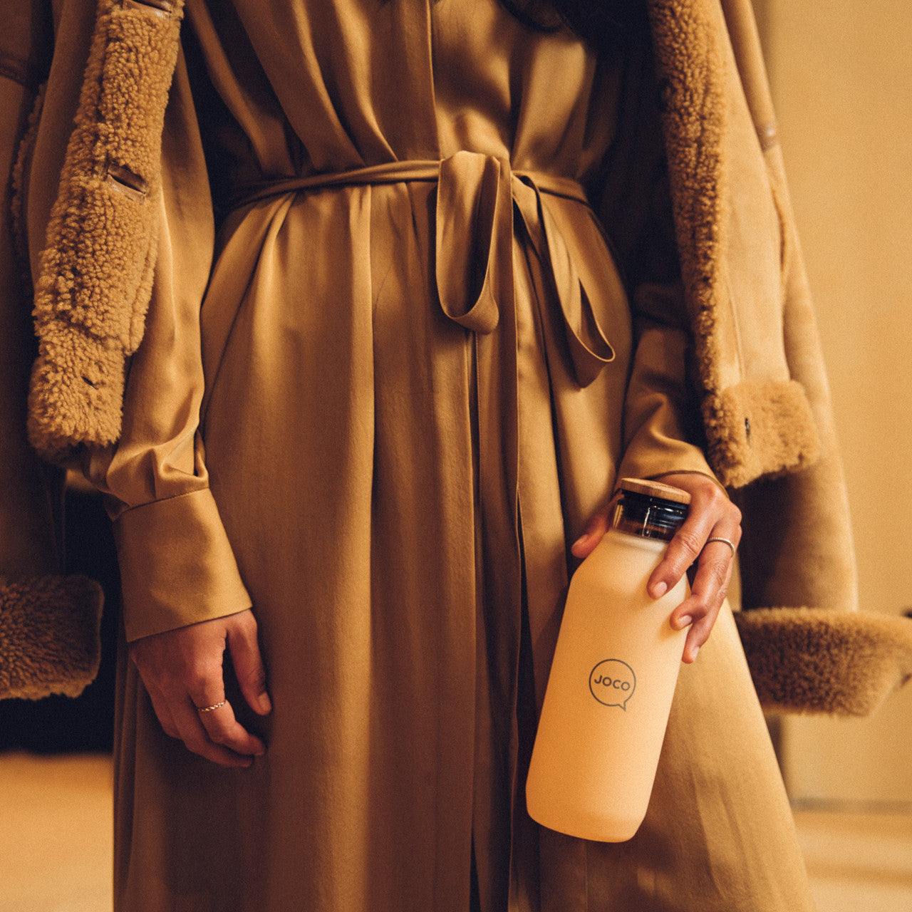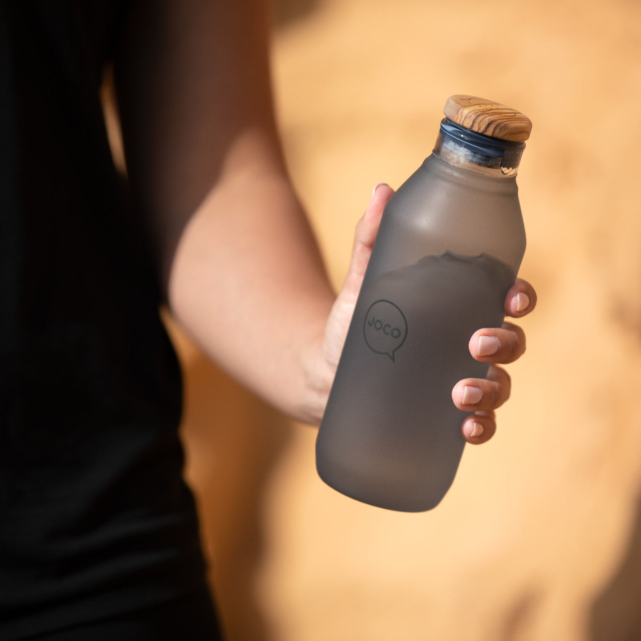 The 20oz Joco Flask is artisan blown from high-grade borosilicate glass and features a naturally antibacterial olive wood lid, and velvet touch non-slip sleeve. Perfect for water and other beverages on the go!