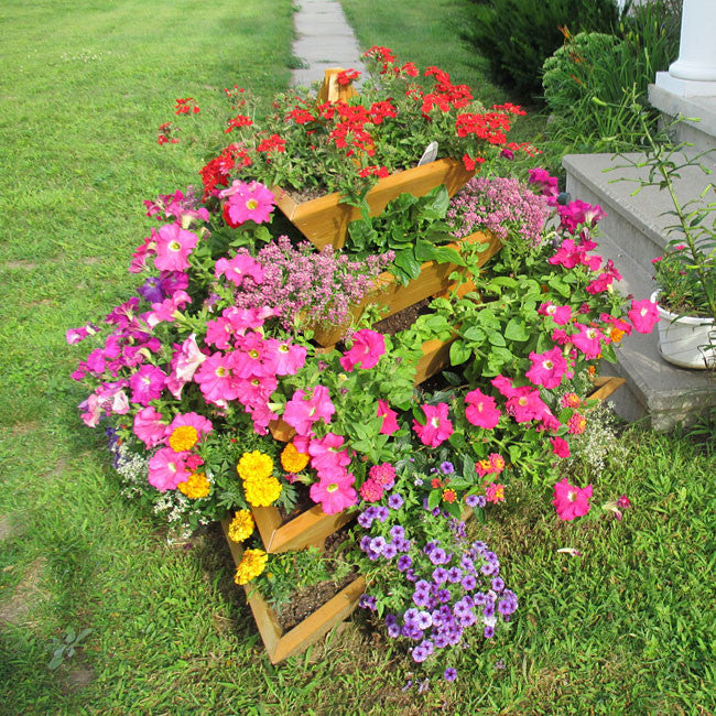 Grow over triple the plants per square foot! The 5-level Plant Pyramid has a small footprint and maximizes growing space with five tiers of durable, cedar garden levels.