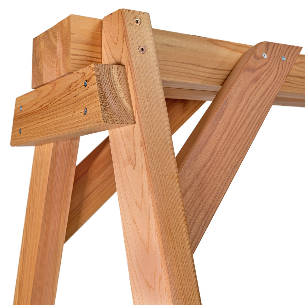 The sturdy A-frame structure provides stable support for the swing, ensuring years of enjoyment. Thoughtful craftsmanship and snug-fitting components make this both a beautiful and practical addition to your outdoor décor. The durable cedar swing is suspended from sturdy, corrosion-resistant hardware, ensuring smooth, gentle motion and long-term durability.
