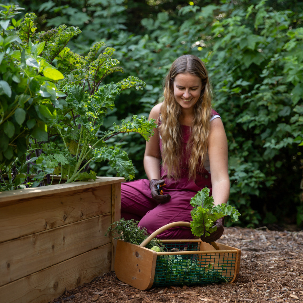 Crafted in Maine and built to last from quality hard and soft woods and durable food-grade vinyl coated wire. This garden hod harvest basket was devised from the same cage-like material used to make lobster traps. The industrial-strength wire mesh is armored with a tough vinyl coating that can withstand the harsh marine environment. This wire mesh works perfectly as a strainer for rinsing off produce with a garden hose, holding your harvest but not the dirt. Pike's Original Maine Garden Hod is the perfect tool for harvesting fresh produce, offering a sturdy and spacious design that helps carry your garden bounty with ease.