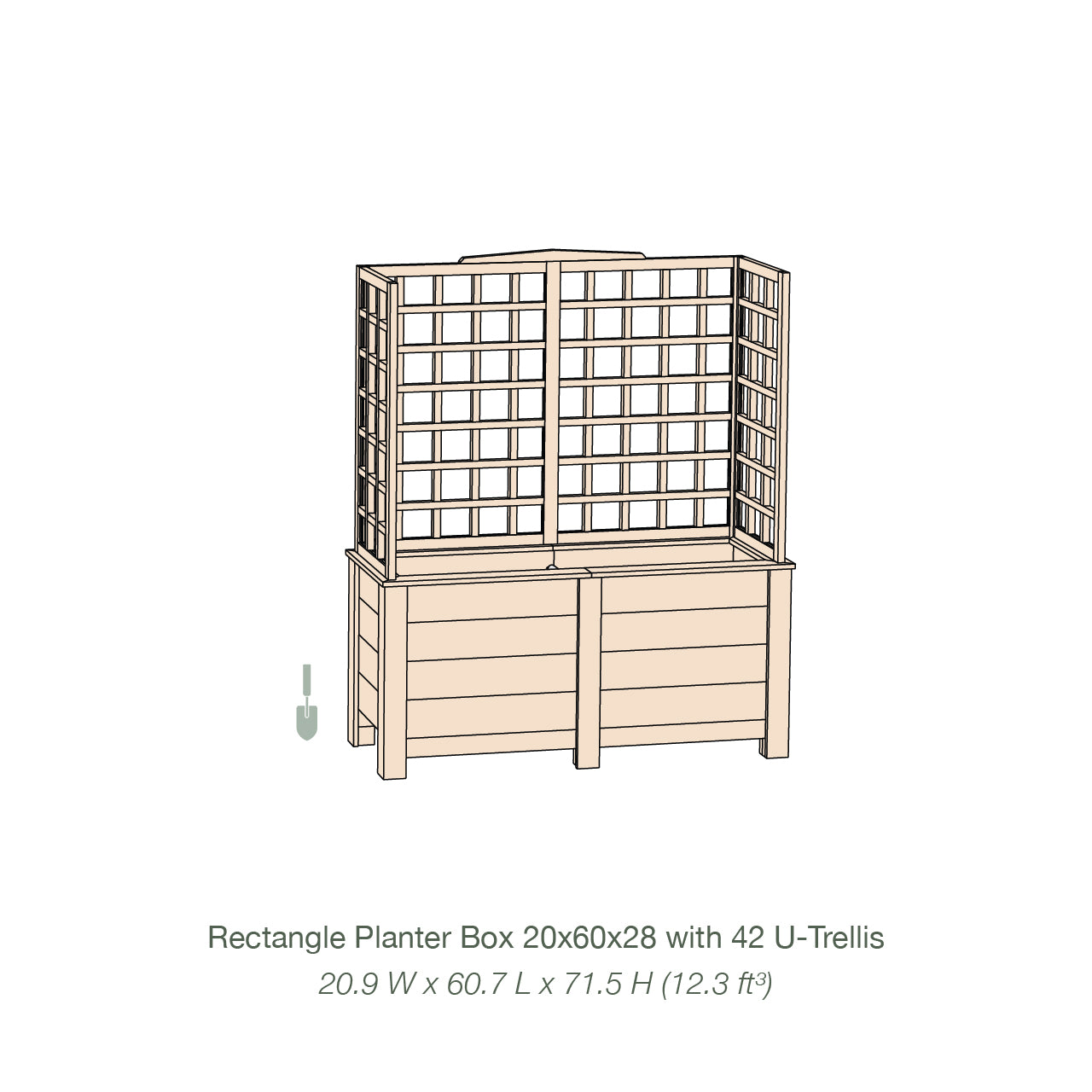 These rectangular trellis planters work well along the perimeter of a patio or deck, or to separate two areas for privacy. The trellis structure and climbing plants provide an attractive focal point and backdrop, enhancing your outdoor space. Choose your planter length and width to suit your space and needs. Planter boxes that are 22" in height come with a standard 48" trellis. Planter boxes that are 28" in height come with a 42" trellis.