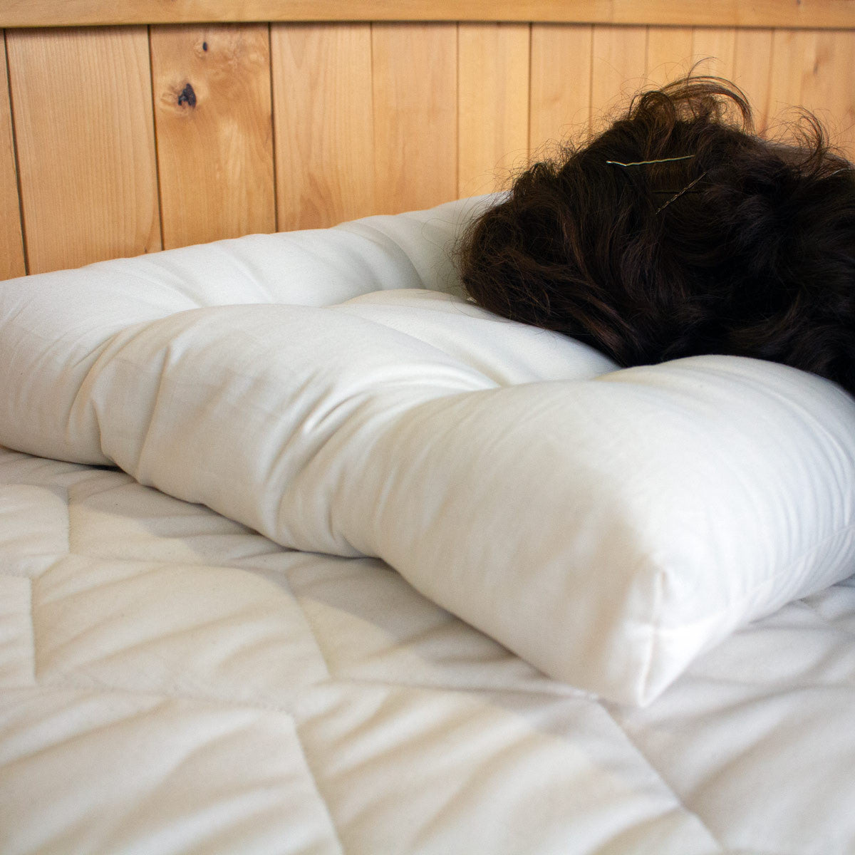 With a neck bolster along each edge, one stuffed slightly more than the other, you can choose the exact amount of support you need. Made with Premium Eco Wool and 100% Organic Cotton, you also get the added benefits of temperature regulation and dust-mite resistance.